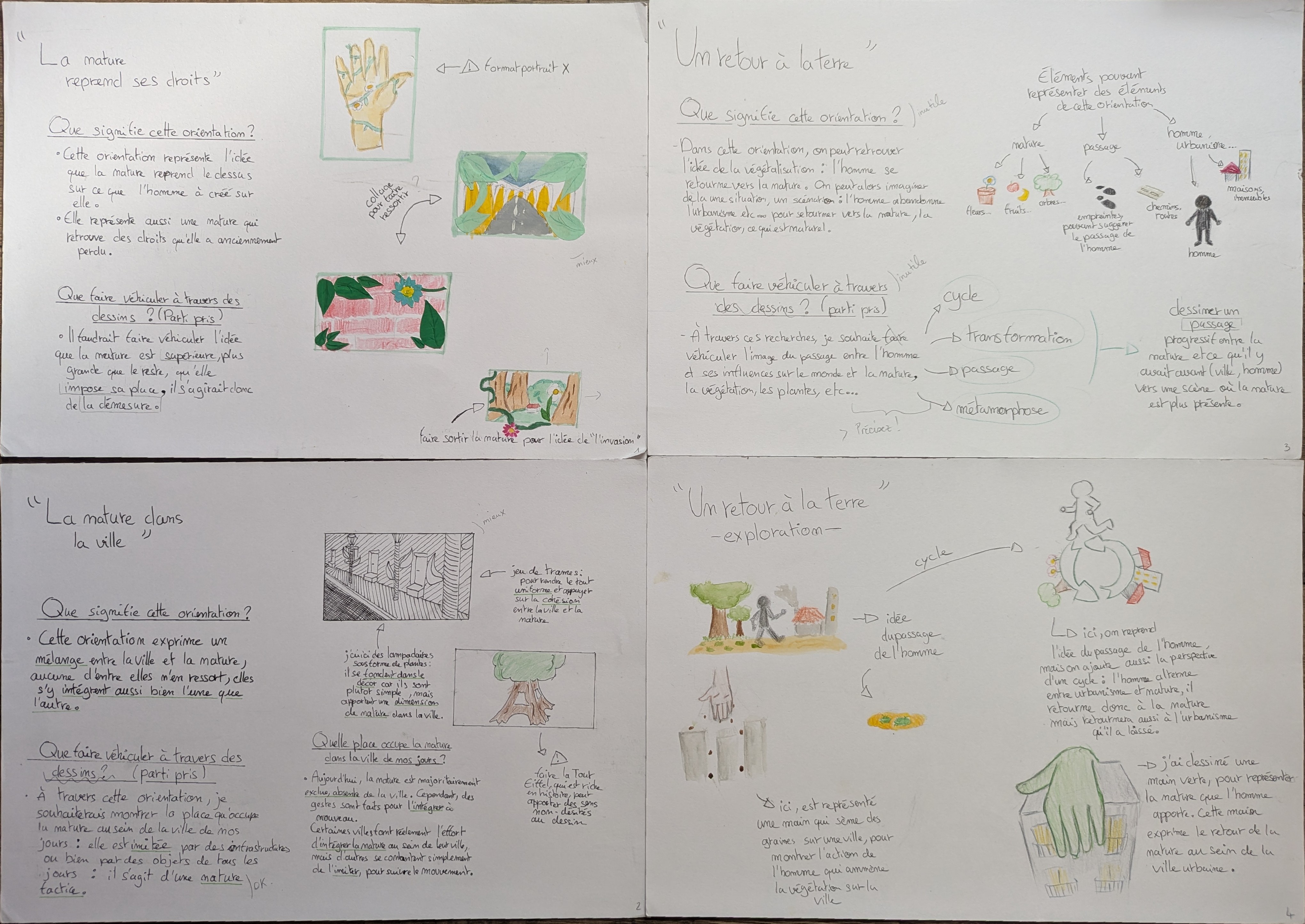 Durant mon année de seconde, j'ai suivi l'option Création Culture Design, qui m'a permis d'apprendre à réaliser des projets, et à communiquer leur évolution, références, etc... Voici différentes planches de mes travaux.